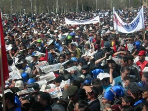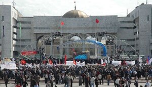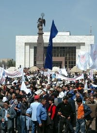 11-апрелде Бириккен фронттун мөөнөтсүз митинги Алатоо аянтында туура саат 14.00дө башталды. Аянтка жыйналган элдин саны байкоочулардын баамында он миңден ашты. Бириккен фронттун лидери Ф. Кулов, штаб жетекчиси Ө. Субаналиев, оппозиция лидерлери Ө. Текебаев, К.Байболов, Э. Алымбаев жана башкалар трибунага көтөрүлдү. Митингди депутат Мелис Эшимканов ачып алып барды.