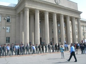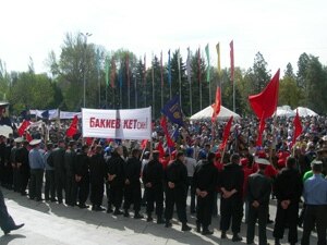 Бүгүн түшкө чейин Бириккен фронттун жактоочулары парламент имаратынан алдында митинг өткөрүштү. Анда чыгып сүйлөгөндөр депутаттарды элдин талаптарын угууга үндөштү. Оппозициянын депутат лидерлери акциячылардын алдына чыгып, парламент сессиясында каралган маселелер боюнча маалымат беришти. Түш маалда митингичилер Алатоо аянтына кайра кайтышты. Бириккен оппозиция уюштурган мөөнөтсүз митинг Борбордук аянтта 11-апрелден бери уланууда.