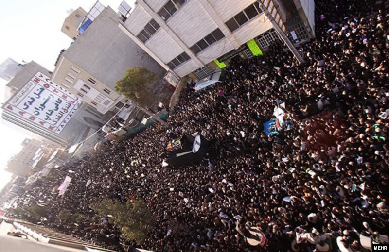 Ирандын эң белгилүү диссидент молдосу ыйык Ком шаарынында жерге берилди. Оппозициячыл интернет сайттары жана күбөлөр сөөк коюга он миңдеген киши катышкандыгын билдиришүүдө. Алардын бири Ком шаарынан Азаттыктын Иран бөлүмүнө буларды айтты: