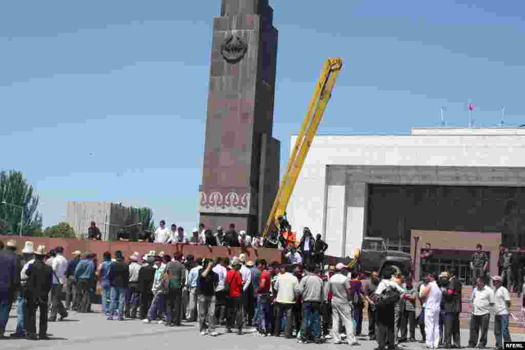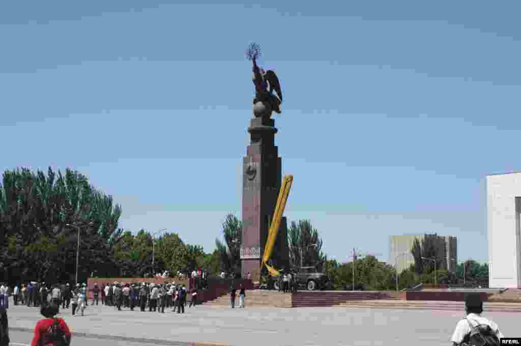 15-майда “Кыргыз эл” биримдиги, “Ак шумкар кут” жаштар биримдиги, “Кырк кыз” жана “Манас эл” кыймылдары, “Бакдөөлөт”, “Манас ата” жана башка коомдук уюмдардын өкүлдөрү Ала-Тоо аянтындагы “Эркиндик” эстелигин алуу аракетин көрүштү.
