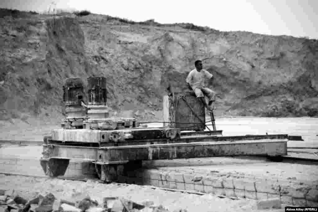 ЭЕ/АҮ Азери кызматынын кабарчысы Аббас Атылайдын Бакы шаарынын чет жакасындагы Түркан ооданындагы таш майдалаган жайдан тарткан сүрөтбаянда убактылуу жумушчулар кантип иштеп жана күн өткөрүп жатканы чагылдырылган. 26.7.2011.