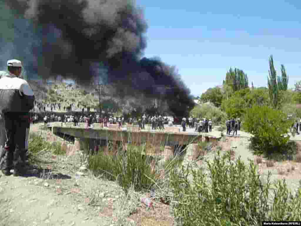 Жети-Өгүздө "Кумтөр" ишканасын электр менен жабдыган подстанция 31-майда өчүрүлгөн. Он чакты митингчи подстанция турган имараттын ичине эч тоскоолдуксуз эле кирип барып өчүргөн. Буга чейин көмөкчү чордон 30-майда да өчүрүлүп, сүйлөшүүлөрдөн кийин кайра берилген. Адистердин билдиришинче, ал "Кумтөр" ишканасынан тышкары төрт чек ара тозотун жана төрт айылды да жарык менен камсыз кылуучу объект болуп эсептелет. "Кумтөргө" электр жарыгы 1-июнда берилгенин “Азаттыкка” Жети-Өгүздүн коменданты Бактыбек Жусубалиев кабарлады. (Мария Колесникова)