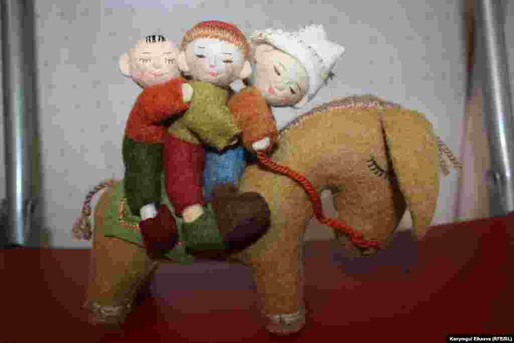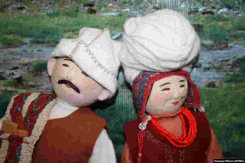 105 жаштагы германиялык айым куурчак сатып алды. Артындагы Кыргызстандан барган чебер Асел Сапакова.