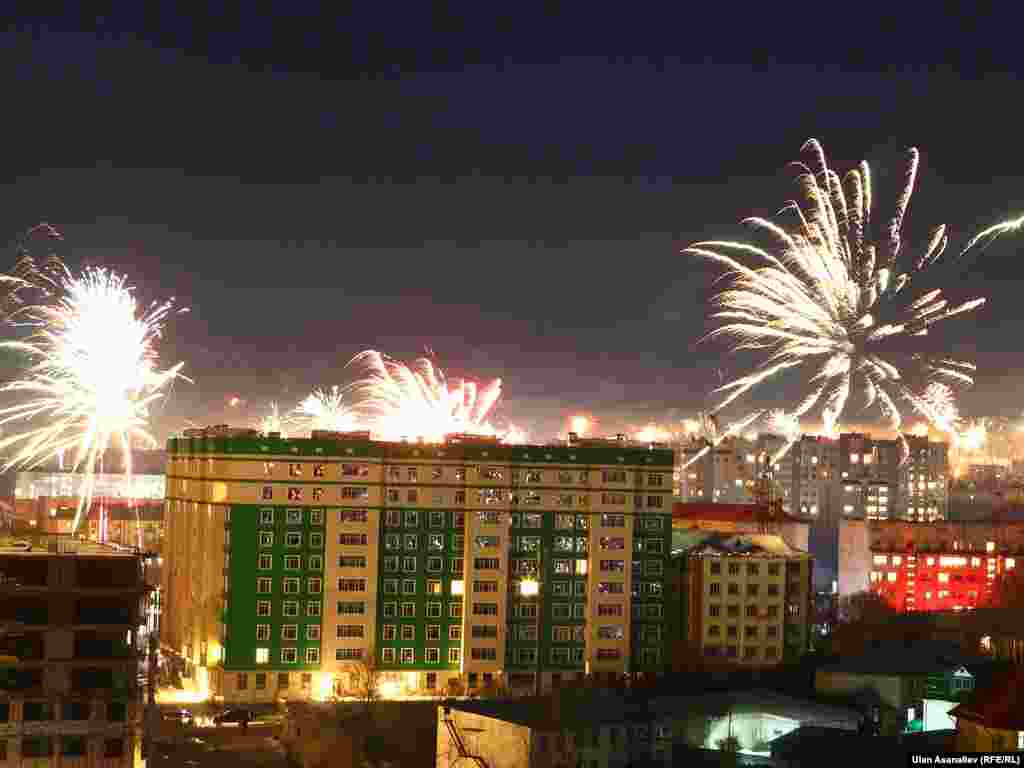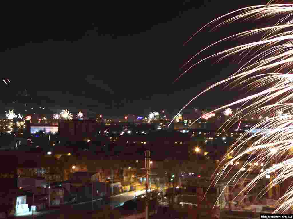 Жылдын жаңырышына адаттагыдай эле асманга атылган фейерверк, салюттар көрк берди шекилди. Сиднейдеги салют шоусуна жетпесе дагы Бишкек шаарынын үстү түркүн-түстүү жарыктарга боёлду.