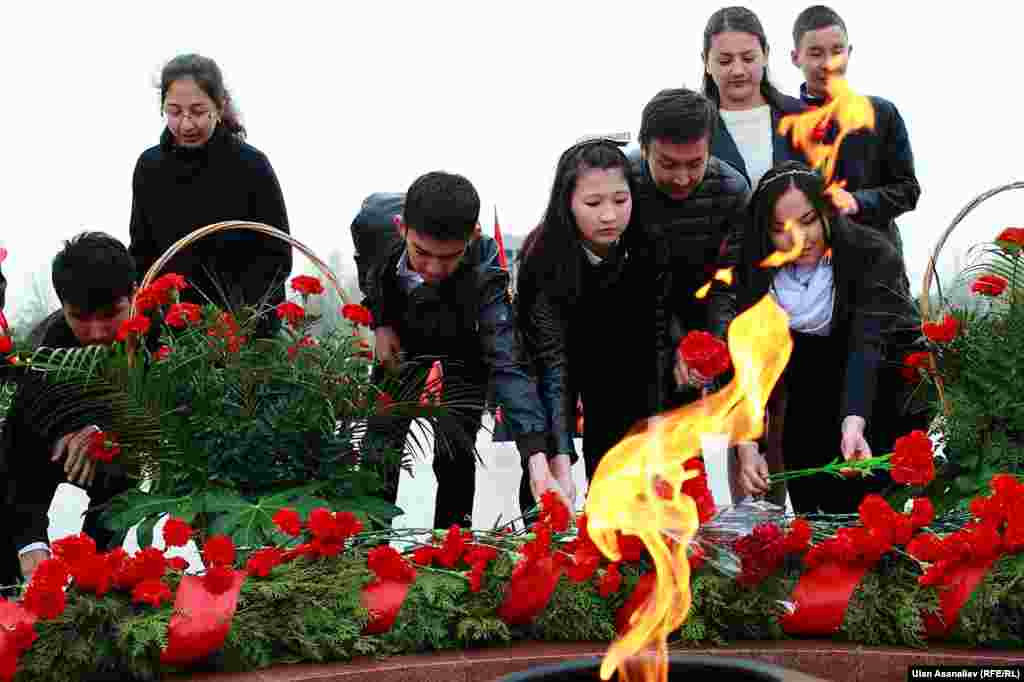 Жеңиштин 70 жылдыгына арналган эл аралык «Эскерүү эстафетасы» бүгүн Бишкекте уланды. Акция буга чейин Минск, Баку жана Кишинев шаарларында өткөн. Көз карандысыз мамлекеттер шериктештигинин Парламент аралык ассамблеясынын демилгеси менен уюштурулган. Иш-чаранын негизги бөлүгүндө Жеңиш аянтындагы Өчпөс оттон тамызгы алынып, атайын кутучага салынды. Эстафета талабына ылайык, бардык өлкөлөрдөн түбөлүк оттун тамызгылары Санкт-Петербург шаарына чогултулуп, 16-апрелде аларды бириктирүү салтанаты өтөт. Бүгүнкү салтанаттын алкагында согуш ардагерлери Жеңиш аянтынын тегерек - четине дарак отургузушту.