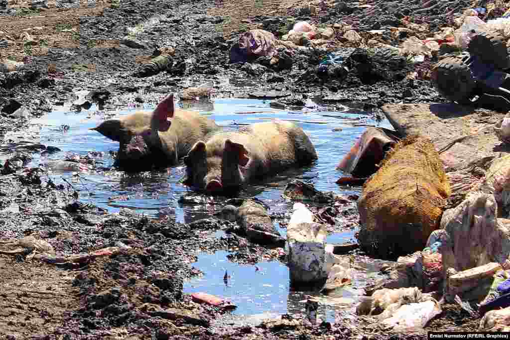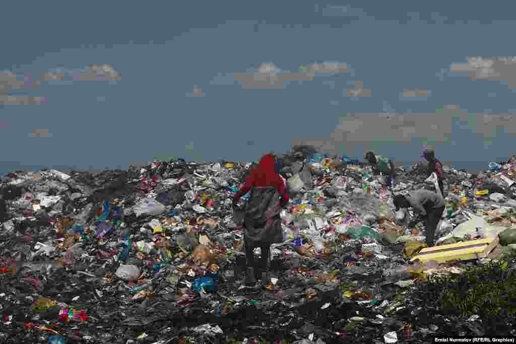 Учурда бул жерди коюу түтүн каптап, таштанды үйүлгөн дөңсөөлөр капкара болуп күйүп калды. Бирок ага карабай анда иштегендердин бири таштандыларды таптап жатса, башкалары ал жердеги акыр-чикирлерди иргеп жүрөт.