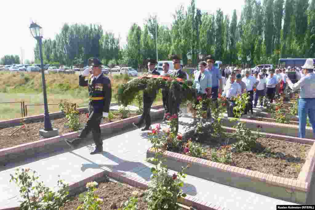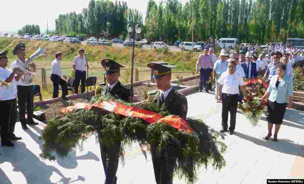 Бишкек-Ош жолунун Сузак районундагы бөлүгүндө тургузулган эстелик жанына шейит кеткендердин туугандары жана жергиликтүү бийлик өкүлдөрү чогулуп, курман болгондордун арбагына багыштап куран окушту. Беш жыл мурунку июнь коогасында «Санпа» заводунун айланасында 16 адам каза таап, тогуз автоунаа өрттөлгөн. Эки кишинин дайыны азыркыга чейин белгисиз.