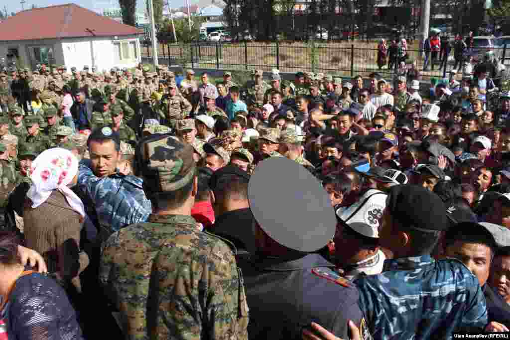 Оштогу №5912 кошумча шайлоо участогуна келген жоокерлер кезектин көптүгүнөн улам добуш бере албай кетишти. Алар келип, шайлоо участкасына кезексиз кире башташкан учурда кезек күтүп турган эл нааразы болуп, кууп жибергенин "Азаттыктын" аймактагы кабарчысы билдирүүдө.