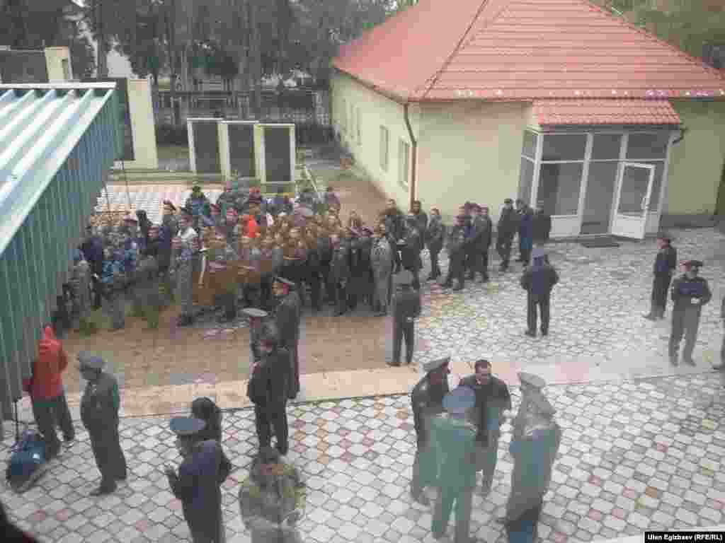 Ички иштер министрлигинде бейшемби күнкү атышууда каза тапкан милициянын атайын кызматынын өкүлү Төлөбек Исмаиловду акыркы сапарга узатуу зыйнаты өтүп жатат.