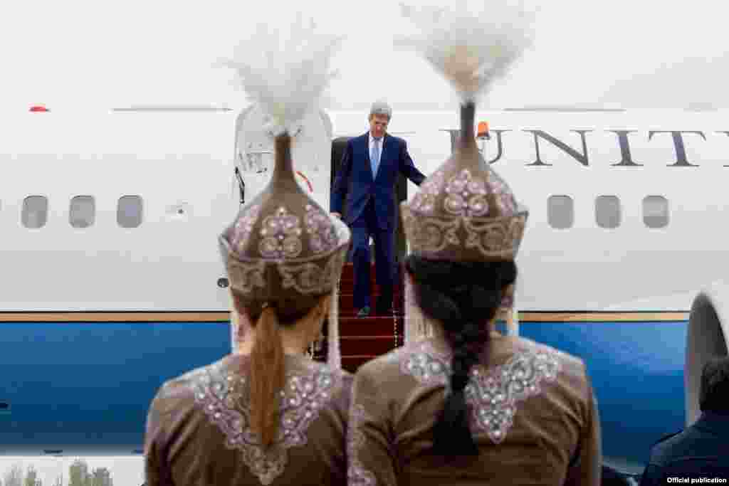 Жон Керри Борбор Азия республикаларын кыдыруусун бүгүн Бишкектен баштады. Алгач ал АКШнын Кыргызстандагы элчилигинин жаңы имаратынын ачылышына катышты. Андан соң президент Алмазбек Атамбаев менен жолукту. Жолугушуудан кийин маалымат жыйында эки тараптуу сүйлөшүү ачык-айкын өткөнүн, бардык маселелер боюнча пикир алышуу болгонун билдирди. Керри Кыргызстанды парламенттик шайлоону ийгиликтүү өткөрүп алышы менен куттуктады. АКШ мамкатчысы бул жолугушуулардын кийин Борбор Азиядагы Америка университетинин жаңы имаратынын ачылышына катышып, студенттер менен жолукту.