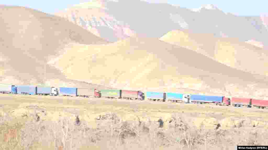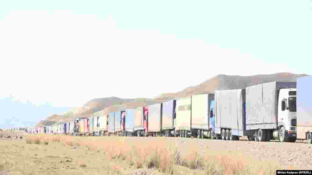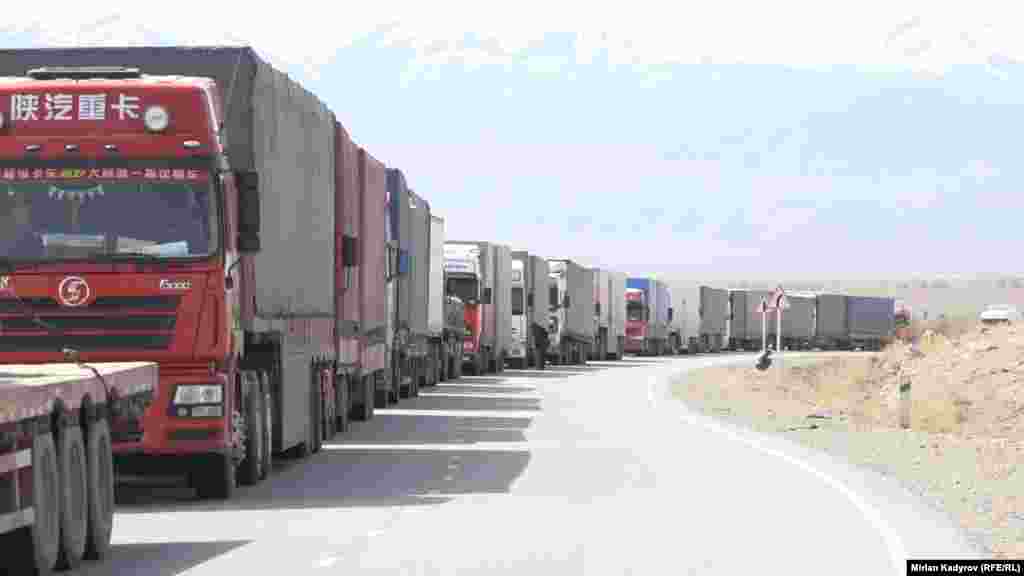 Ушул тапта Кытайдан жүк тарткан жүздөн ашык автоунаанын айдоочулары Ат-Башы районунун аймагындагы таразага тартуу бекетинде үч күндөн бери токтоп турат.