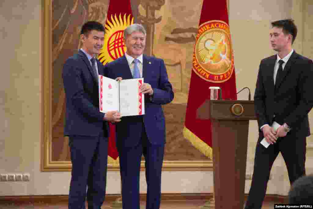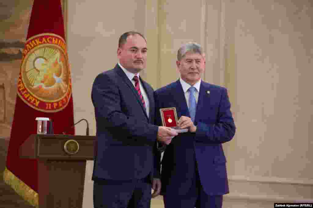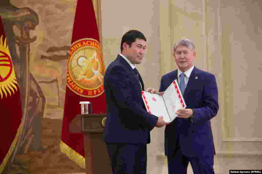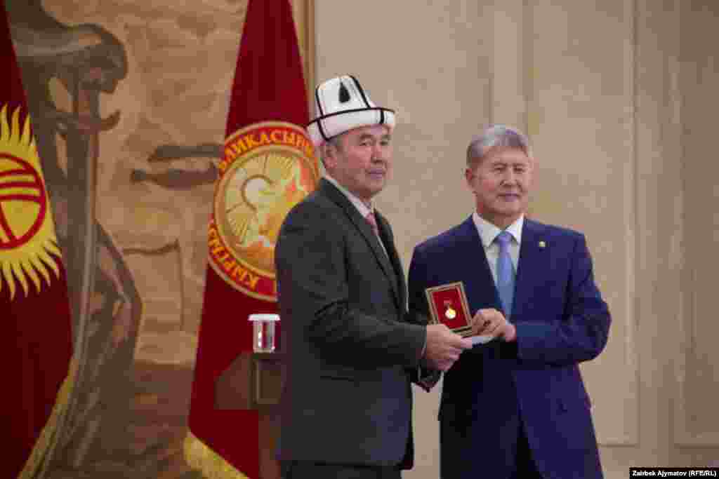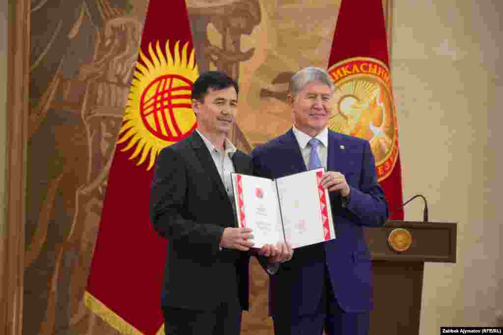 Бүгүн президент Алмазбек Атамбаев Эгемендиктин 25 жылдыгына карата ыйгарылган мамлекеттик сыйлыктарды тапшырды.