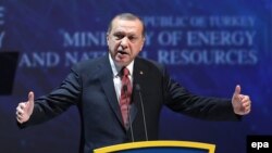 Эрдогандын бул билдирүүсү Швейцарияда Сирия кризисин жөнгө салуу боюнча сүйлөшүүлөр өтүп жатканда жасалды. АКШ, Орусия жана бир катар Жакынкы Чыгыш мамлекеттеринин өкүлдөрү катышкан жолугушуу ишемби күнү жыйынтыксыз аяктаган эле.