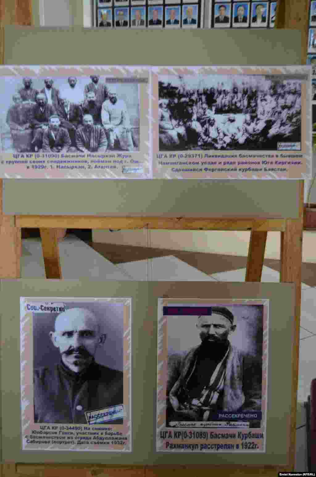Көргөзмөдө “басмачы” деп кулакка тартылган лидерлердин да буга чейин жарыкка чыкпаган сүрөттөрү тизилди.