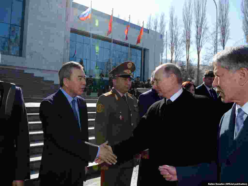 Орусия президентин "Манас" эл аралык аэропортунан премьер-министр Сооронбай Жээнбеков тосуп алды.