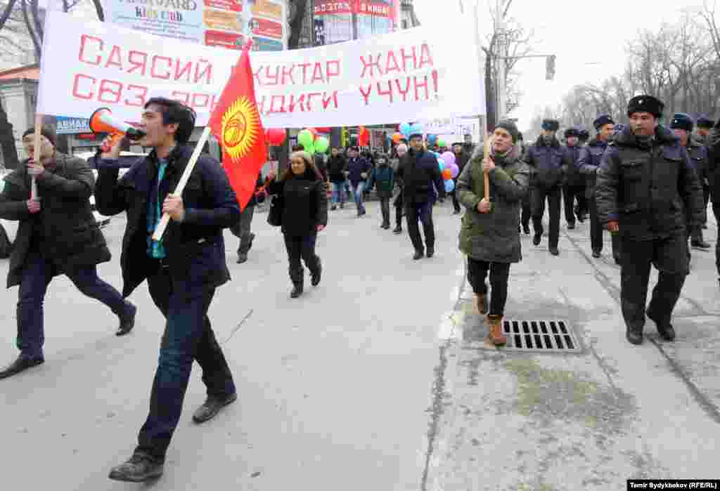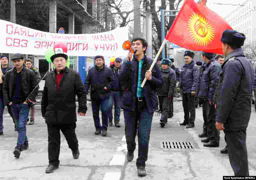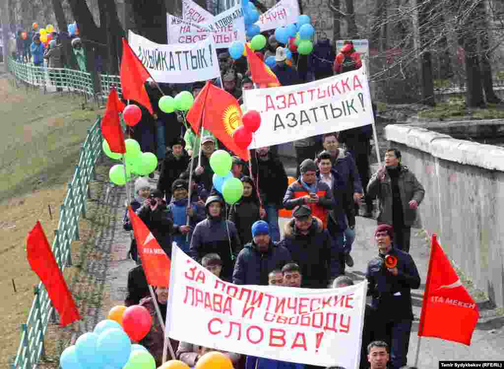 Саясий укуктар жана сөз эркиндиги үчүн деп аталган тынчтык жүрүш керней-сурнай тартылып, майрамдык шаң менен башталды.