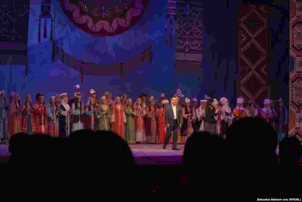 Спектакль Акун хандын сарайында Семетей менен Айчүрөктүн тою менен соңуна чыгат.
