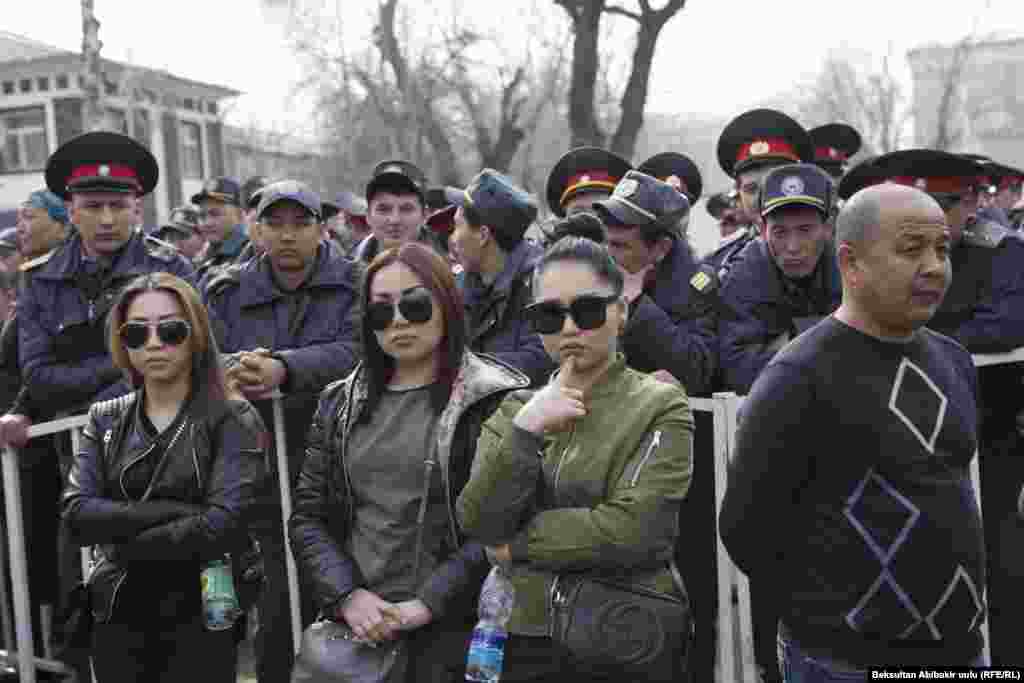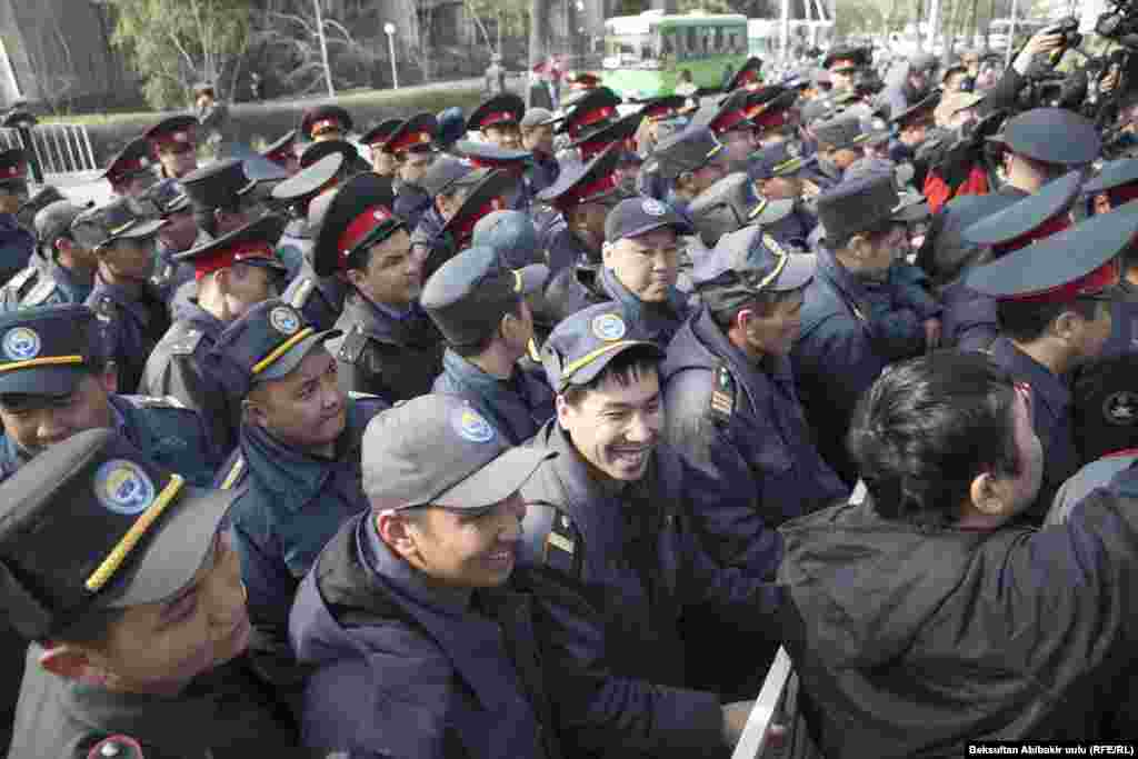 Митингге чыккандарга каршы газ колдонулуп, УКМК имаратынан формачандар чыкты. Асманга атылган октордун добушу да угулду. УКМК алдында милиция, спецназдын саны көбөйдү.