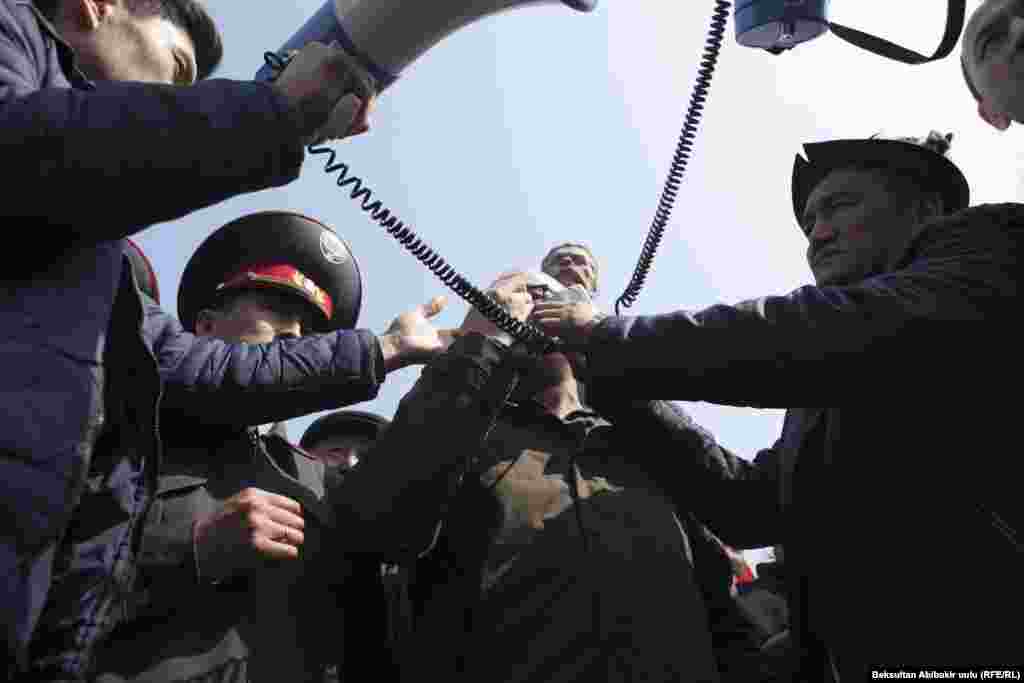 Милиция катышуучуларды, анын ичинде укук коргоочу Турсунбек Акунду кармап кетти. Буга нааразы болгондор катуу каршылык көрсөтүп, милицияны таш менен ургулашты.