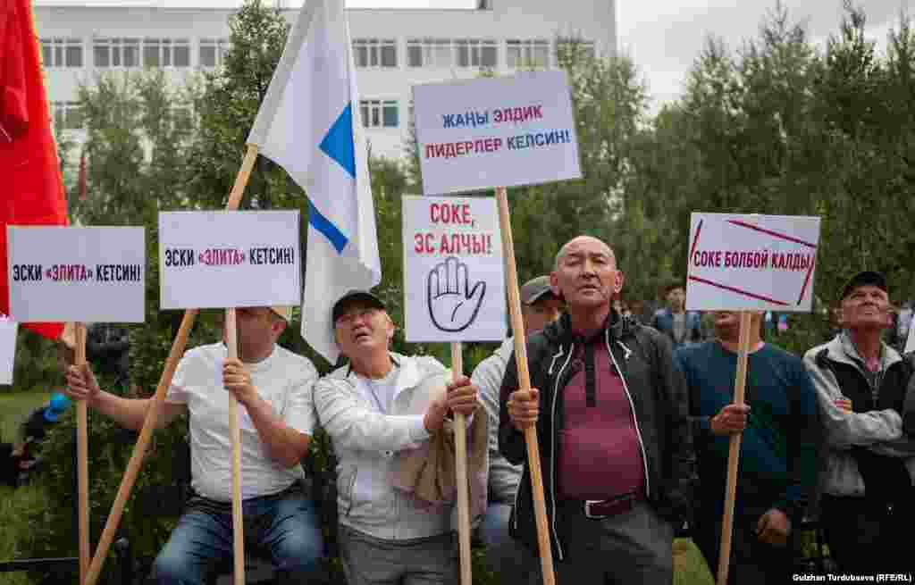 «Соке болбой калды» аттуу акцияда «Эски элита кетип, жаңы элдик лидерлер келсин!» деген чакырык ташталаары буга чейин Интернетке чыккан кабарларда жазылган.