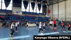 Ишкананын жетекчиси Айнура Осмоналиева "Азаттыкка" билдиргендей, эки күндүк мелдеш 8-март - Аялдардын эл аралык тилектештик күнүнө карата өтүүдө. Ага профессионал волейбол менен машыкпаган кыз-келиндер катышууда. Негизинен үй кожойкелери.