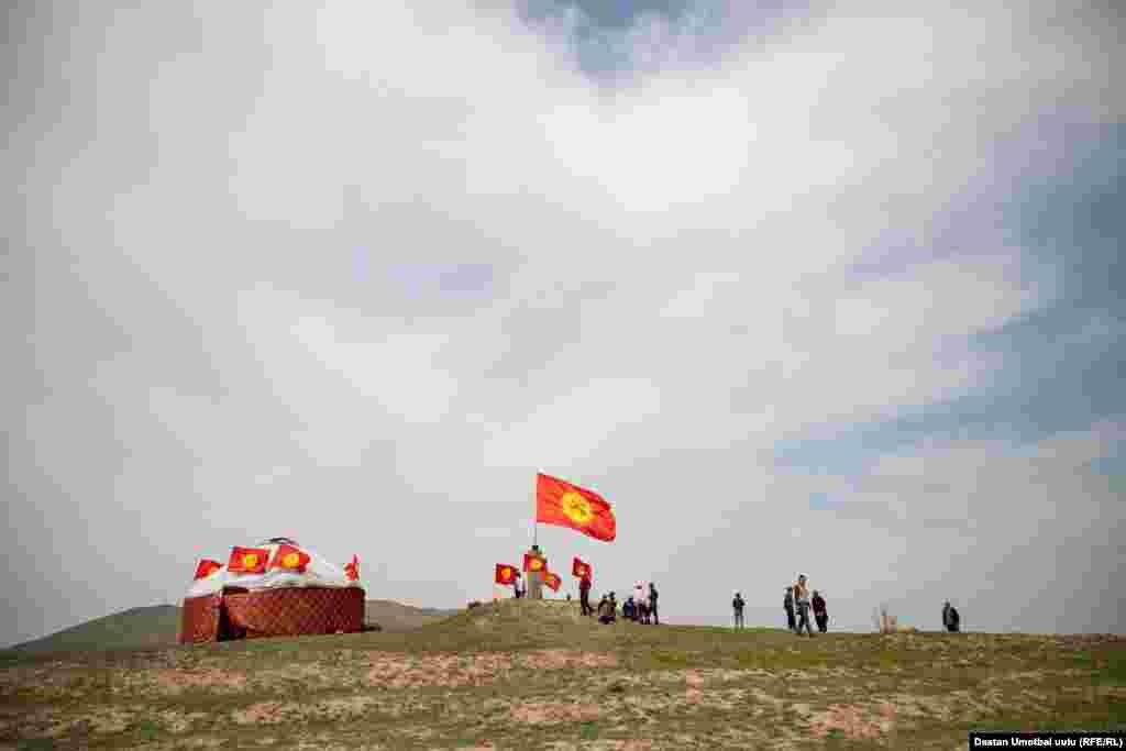 Акциянын катышуучулары бир нече күн мурда боз үй тигип, жака-белине Кыргызстандын мамлекеттик тууларын илип коюшкан.