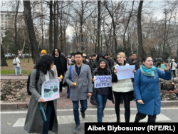 Уюштуруучулардын бири, журналист Азият Жекшеев бүгүнкү жүрүш жарандык укукту коргоо үчүн уюштурулганын, кеминде миңдей адам чогулганын айтты: