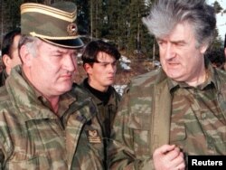 Босниялык сербдердин саясый лидери Радован Каражич (оңдо) жана серб күчтөрүнүн командачысы Ратко Младич (солдо). Власич тоосу. 1995-жыл