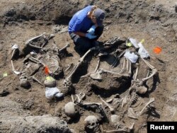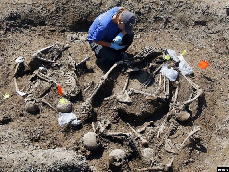 Босния-Герцеговина. Адис-эксперт 1992-95-жылдары босниялык сербердин аскерлери өлтүрдү деп шектелген адамдардын сөөктөрүн иликтөөдө. Вышегрд шаарчасынын чыгыш жагындагы белгисиз көрстөн. 5-август 2010