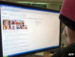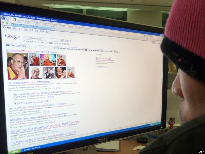 Кытайлык жигит Google'дун кытай тилиндеги булагынан Далай Лама жөнүндөгү маалыматтарды издөөдө. Бээжин. 14-январь 2010