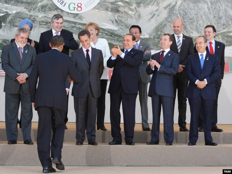 АКШ президенти Барак Обама Италиянын Аквила шаарындагы саммиттен кийинки сөзүндө бүгүнкү дүйнөнүн саясый-экономикалык жана башка көйгөйлөрүнө каршы экономикасы тез кубаттанып бараткан чоң мамлекеттерсиз күрөшүү мүмкүн болбой калганын ачык айтты:
