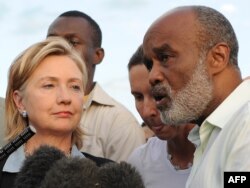 Хиллари Клинтон Гаитинин президенти Рене Превал менен сүйлөшкөндөн кийин өлкөнү бүлгүндөн толук калыбына келтирүү үчүн Вашингтон жардамын аябасын айтты:
