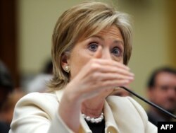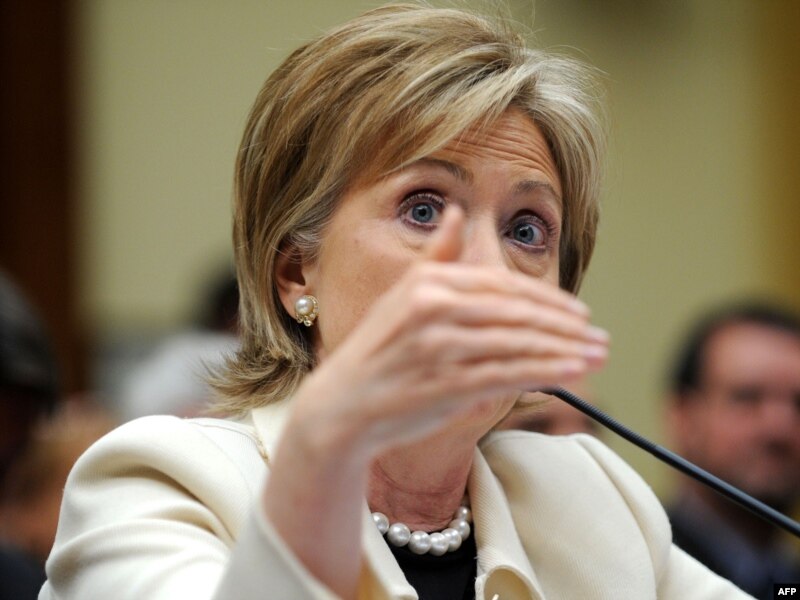 Мамкатчы Хиллари Клинтон АКШнын тышкы саясаттагы орчун милдеттери боюнча Өкүлдөр жыйынынын Тышкы байланыштар комитетиндеги угууда түшүндүрмө берүүдө. Вашингтон. 22-апрель