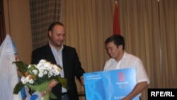 Бээжин олимпиадасынын күмүш байге ээси Канатбек Бегалиевди спорт коомчулугу ийгилиги менен куттуктап, өлкө жетекчиси Курманбек Бакиев 100 миң доллар жана “Мицибисси” үлгүсүндөгү жип автоаргымагын тапшырды.