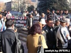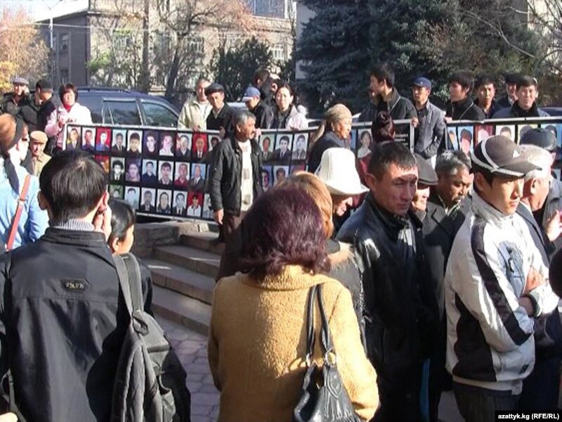 Соттун жылдырылышына нааразы болгон жабырлануучулар Жогорку Кеңештин алдына митинге чыгышты, 18-ноябрь 2010-жыл