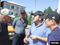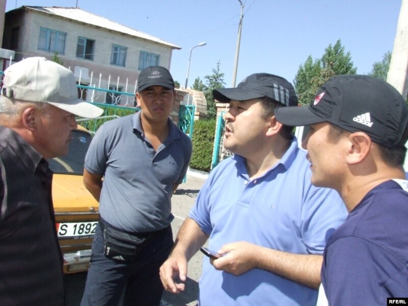 Тирешкен тараптан: оң жакта Балыкчы милициясынын начальниги К. Дегенбаев жана сол жакта ортодо депутат К. Кадыров.