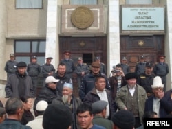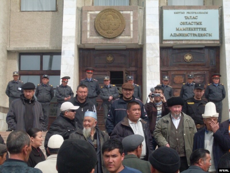 Талас облустук акимчилигине кирип бараткан эл, 2010-жылдын 6-апрели.
