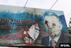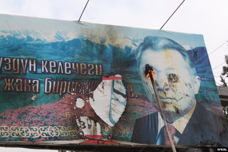 Президент К. Бакиевдин сүрөтүн өрттөп атышат.