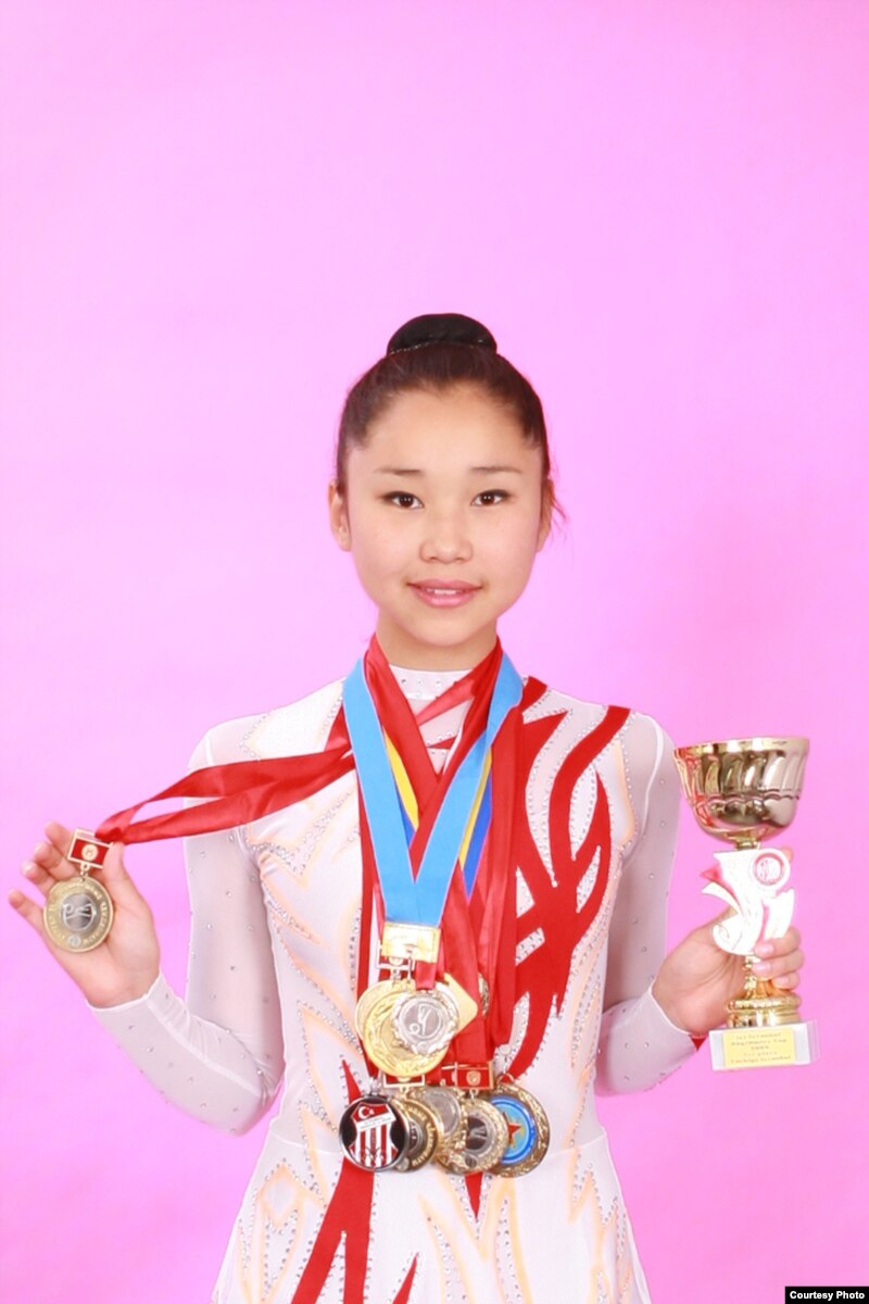 17 жаштагы Айнура көркөм гимнастика менен он жашынан тарта машыгып, он эки жашында эле Кыргызстандын толук чемпиону болгон.