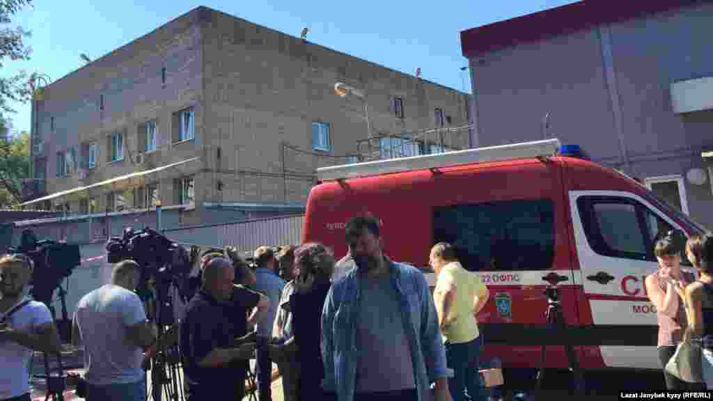 Өрт кырсыгы орун алган имараттын алдында турган кыргызстандыктар.