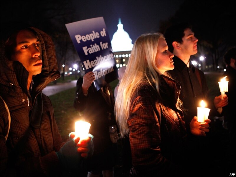 Саламаттык сактоо системасын реформалоону колдоочулар Капитол Хиллдин жанында шам кармап турушат. Вашингтон. 8-декабрь 2009