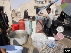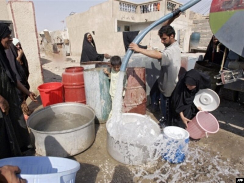 Багдадга канатташ Саби Кусур шаарчасынын тургуну бар идиштерине суу толтурууда.