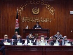 Бурхануддин Раббани(оңдон үчүнчү) Ооган парламентинин жыйынында. 4-июнь 2011-жыл