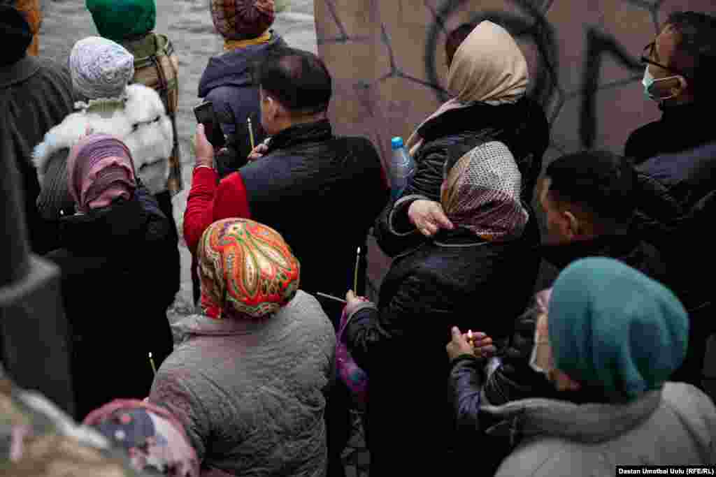 Түшкө жакын жүрүшкө даярданып, крест кармаган чиркөө кызматкерлеринин артына тизилип Ак-Буураны карай жол тартышты.