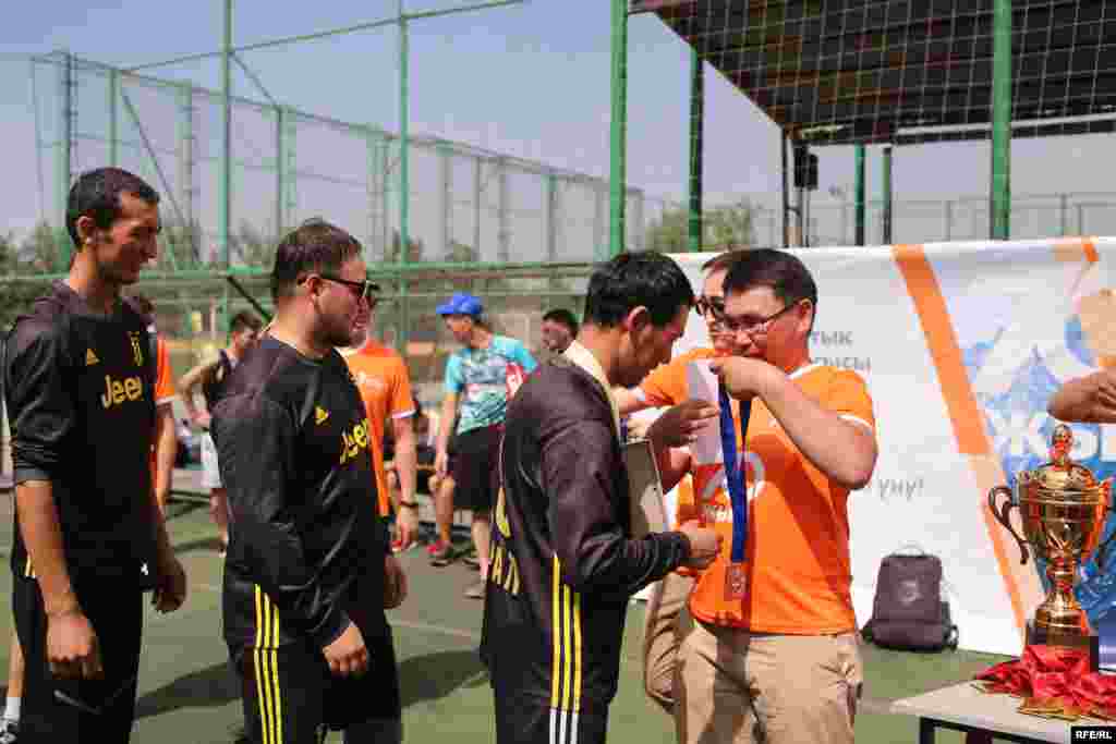 "Азаттык" үналгысынын 70 жылдыгына арналган кичи-футбол боюнча мелдеш жыйынтыкталып, жеңүүчүлөр аныкталды. Бүгүн, 10-июнда Бишкектеги Футбол борборунда өткөн оюнга 13 команда катышып, “Т-Медиа - Ош ТВ” командасы 1-орунга чыкты. 2-орунду "Марва ТВ" ээлесе, 3-орунду "ЭлТР" командасы алды. 1-орунга 15 миң сом, 2-орунга 10 миң сом жана 3-орунга 5 миң сом акчалай сыйлык тапышырлды. Байге алган командалар ээлеген орундарына жараша кубок, медалдар менен сыйланышты.
