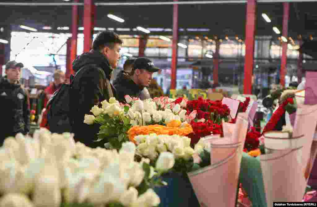 Ош базардын так ортосунда жайгашкан гүл базарда акыркы эки күндө соода кызыды. Базарда бир даана роза түрүнө жараша 120 сомдон, 170 сомго чейин сатылса, жоогазындардын баасы 120 сомдон башталат. Каалоочулар үчүн сатуучулар кооз букет да жасап беришет.