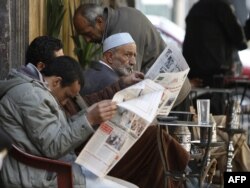 Египеттиктер гезит окушуп, суу чылымдарды тартышууда. Каирдин ортолук бөлүгү. 31-январь 2011