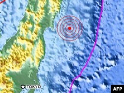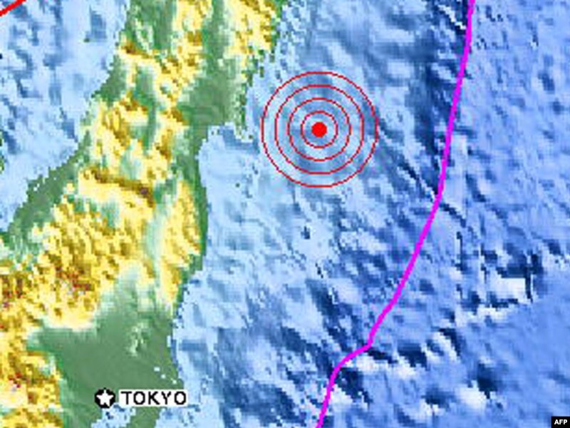 АКШ Геологиялык иликтөө компаниясы жиберген бул сүрөттө 2011-жылдын 11-мартында Жапониянын түндүк-чыгышына жакын мухит тереңдигинде күчү 8,9 даражага жеткен жер титирөө болгон аймак көрсөтүлгөн. AFP PHOTO / USGS.