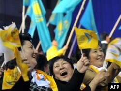 4-апрелде Нурсултан Назарбаев өз жактоочуларынын «Лидерибиз менен бирге - алга!» деп аталган форумда сүйлөп жатканда утур-утур кол чабуулар жана кубаттоолор менен анын сөзүн токтотуп жатышат. Шайлоонун алдын ала жыйынтыктарын Назарбаев мындайча баалады: