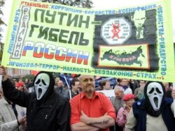 Путинге каршы митингдин катышуучулары "Мен Путини жок Россия үчүн" деген ураанды көтөрүп турушат. Москва, 25-сентябрь 2011